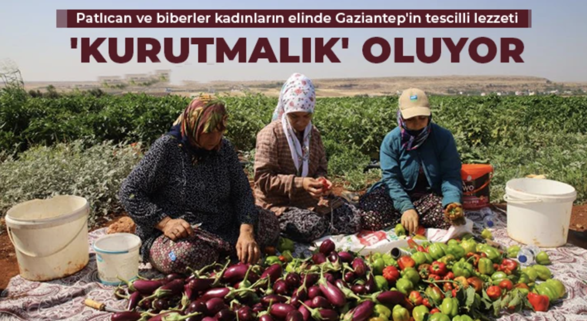 Gaziantep'te, Şahinbey Belediyesi tarafından dağıtılan fidelerden ilk hasatlarını toplayan kadınlar, yetiştirdikleri biber ve patlıcanları toplayarak kurutmalık yapmak içlerini oyup güneşe bırakmaya başladı.
