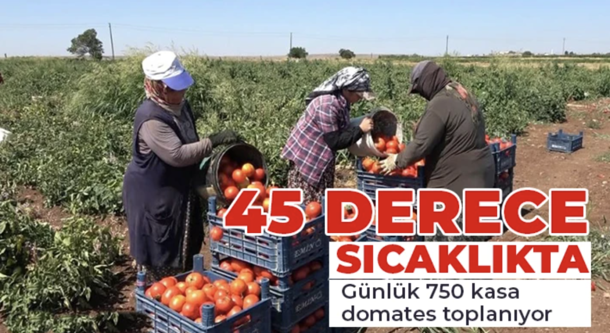 Gaziantep'te domates hasadı, kadın işçilerin yoğun mesaisiyle başladı. 45 dereceyi bulan sıcaklıklarda dahi büyük bir azimle çalışan kadınlar, günlük ortalama 750 kasa domates topluyor.