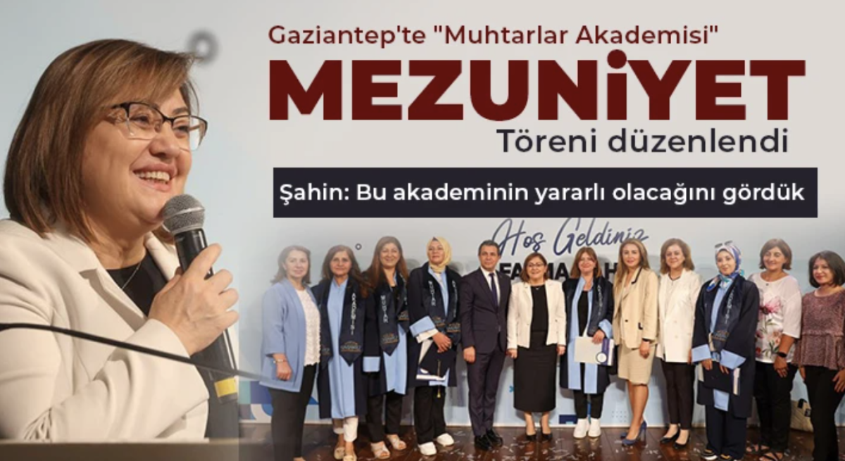 Gaziantep’te “Muhtarlar Akademisi” projesi kapsamında, 7 başlıkta toplamda 32 saat eğitim alan 186 muhtar için Gaziantep Büyükşehir Belediyesi Onat Kutlar Konferans Salonu’nda mezuniyet töreni düzenlendi.