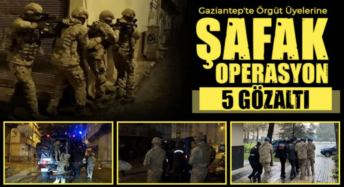 Gaziantep İl Jandarma Komutanlığı ekipleri, terör örgütlerinin ve işbirlikçilerinin faaliyetlerinin deşifre edilmesi ve engellenmesine yönelik Gaziantep Cumhuriyet Başsavcılığı koordinesinde çalışma yaptı. Yapılan çalışmalar sonucunda 2014 - 2016 yılları arasında sınır ötesinde DEAŞ/IŞID Silahlı Terör Örgütü içerisinde faaliyet gösteren E.M.D., E.B.M.E., A.E. ve M.A. isimli yabancı uyruklu 4 şahıs ile şahsi sosyal medya hesabında örgütün propagandasını yaptığı tespit edilen M.Ö. isimli şahıs olmak üzere toplam 5 şüpheli, Şahinbey, Şehitkamil, Oğuzeli ve Nizip ilçelerinde bulunan adreslerine şafak vakti yapılan operasyon ile yakalandı. Yakalanan şahısların ikamet adreslerinde yapılan arama sonucunda ise tespit edilen dijital materyallere el konuldu. Gözaltına alınan şüphelilerden E.M.D., A.E., M.Ö. ve M.A. adli kontrol şartıyla serbest bırakılırken E.B.M.E. isimli şahıs sevk edildiği adli makamlarca tutuklanarak cezaevine gönderildi.