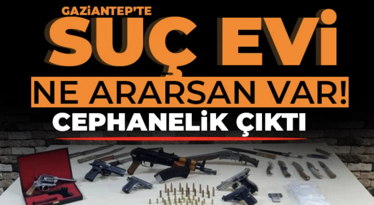 Gaziantep’te polisin bir eve düzenlediği basında kaleşnikof piyade tüfeği, 5 adet tabanca çok sayıda bıçak ile uyuşturucu ve hassas terazi ele geçirildi.