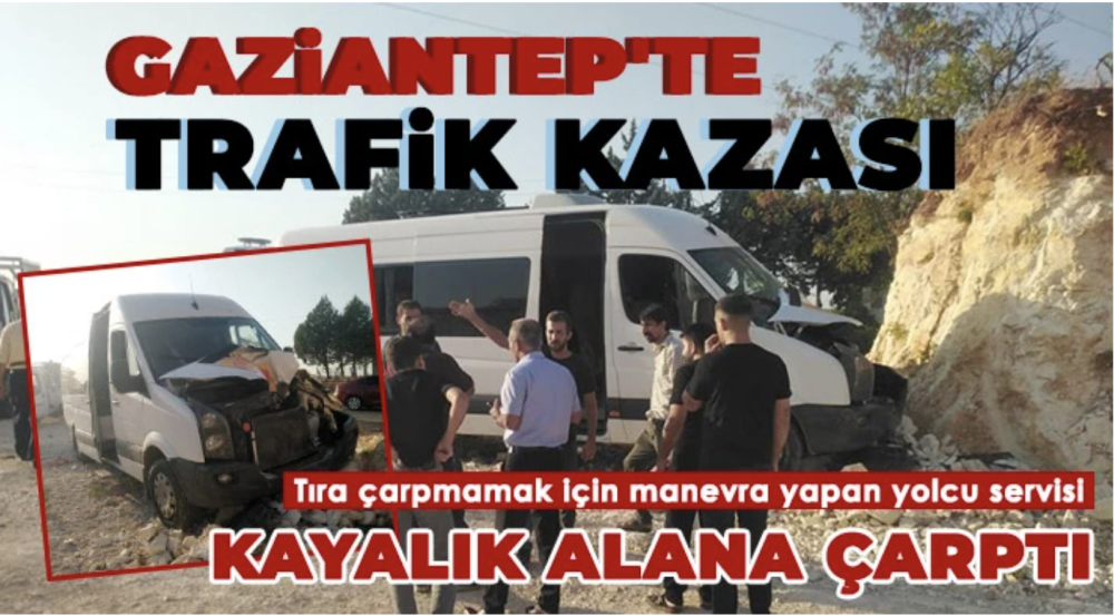 Gaziantep'te, bir anda yön değiştiren önündeki tıra çarpmamak için ani manevra yapan yolcu servisi, direksiyon hakimiyeti kaybolduktan sonra yol kenarındaki kayalık alana çarparak durabildi. Kazada servis aracı sürücü yaralandı.