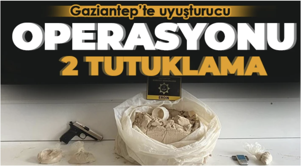 Gaziantep İl Emniyet Müdürlüğüne bağlı Narkotik Suçlarla Mücadele Şube Müdürlüğü ekipleri Cumhuriyet Başsavcılığı koordinesinde 8 Ağustos'ta operasyon düzenledi. Düzenlenen operasyonda, 11 kilo 100 gram eroin, 1 adet hassas terazi ve 1 adet kurusıkı tabanca ele geçirildi. Olay ile ilgili 2 şüphelinin tutuklandığı bildirildi.