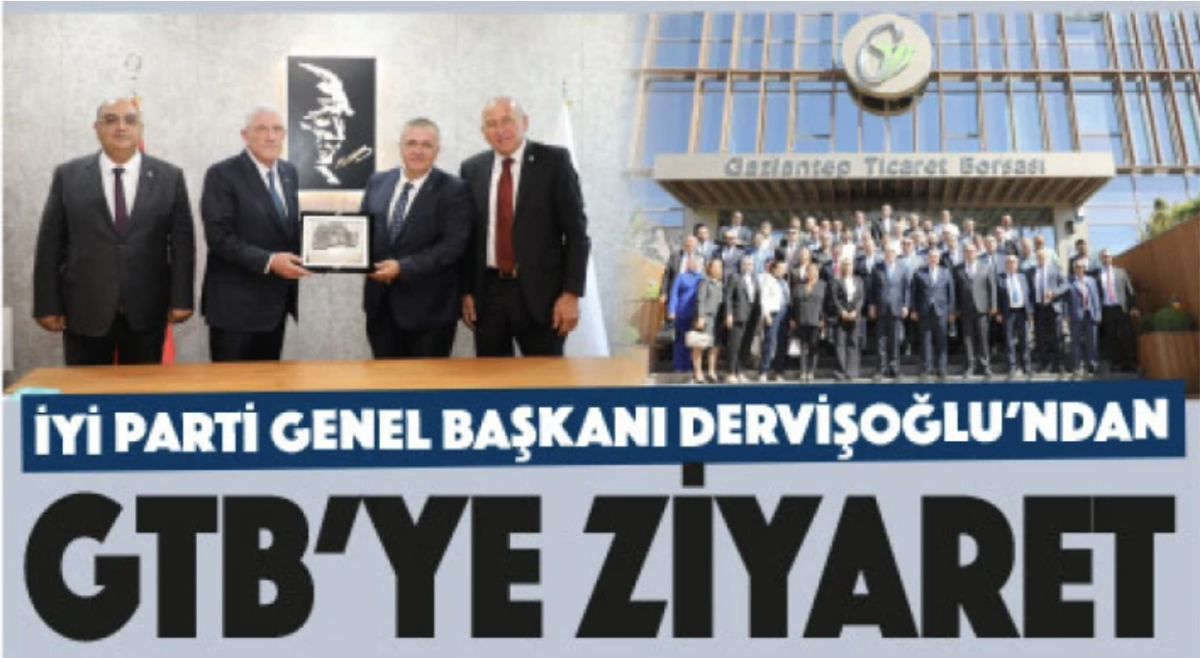 İYİ Parti Genel Başkanı Müsavat Dervişoğlu ve beraberindeki heyet Gaziantep Ticaret Borsasını (GTB) ziyaret ederek, Yönetim Kurulu Başkanı Mehmet Akıncı ile bir araya geldi.