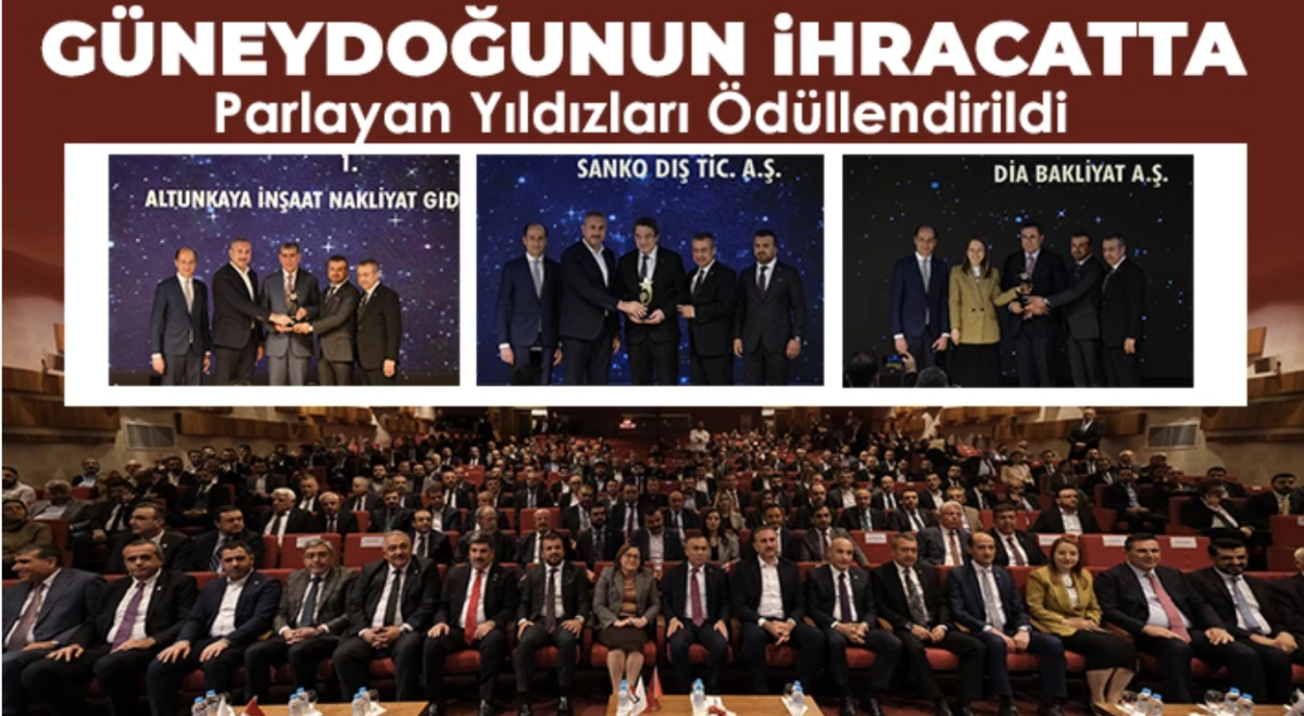 Güneydoğu Anadolu İhracatçı Birlikleri düzenlediği ödül gecesiyle 2022 yılında ihracatlarıyla Güneydoğu Anadolu Bölgesi’nde fark yaratan, bölge ve ülke ekonomisine en fazla katkıda bulunan firmaları ödüllendirdi. Bölgenin ihracat şampiyonu ALTUNKAYA İNŞAAT NAKLİYAT GIDA TİC. A.Ş. olurken, onu SANKO DIŞ TİC. A.Ş., MUTLU MAKARNACILIK SAN. VE TİC. A.Ş. ve ŞÖLEN ÇİKOLATA GIDA SAN. ve TİC. A.Ş. takip etti.