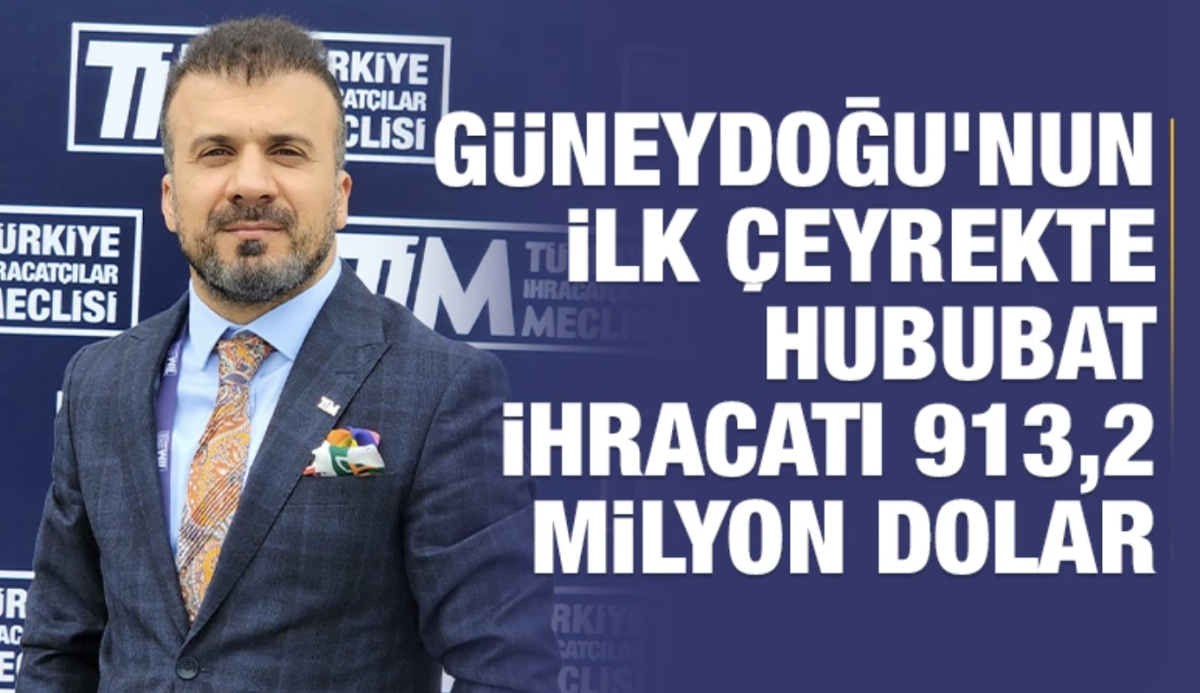Güneydoğu Anadolu'nun hububat, bakliyat, yağlı tohumlar ve mamulleri ihracatı, yılın ilk 3 ayında yüzde 9,8 artarak 913,2 milyon dolara ulaştı.