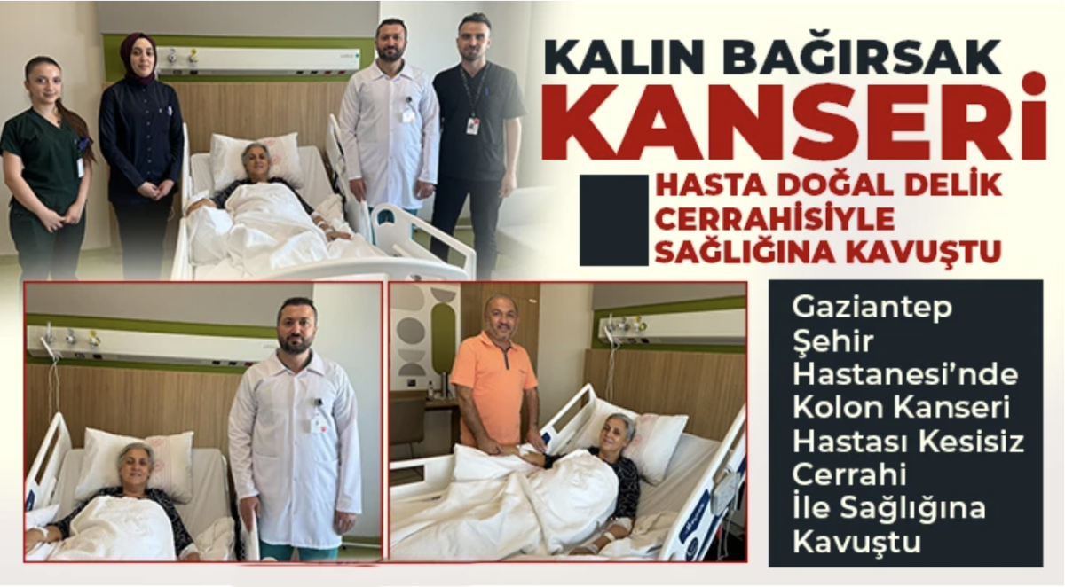 Yaklaşık 2 ay önce kolon kanseri teşhisi konulan 58 yaşındaki Hülya Bakır, Gaziantep Şehir Hastanesinde laparoskopi yöntemiyle ameliyat edildi. Doğum kanalı kullanılarak hastalıklı parça çıkarıldı.