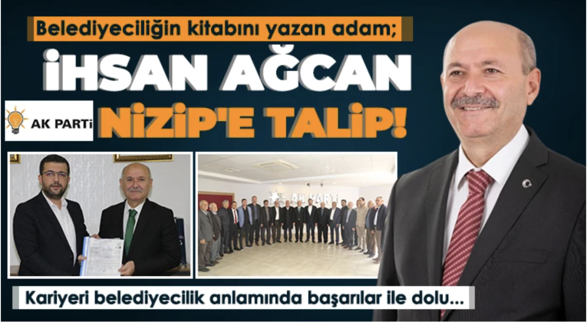 Gaziantep Memur-sen Kurucu il Başkanlığı görevini yapan daha sonra sırasıyla Gaziantep Şehitkamil Belediye Başkan Yardımcılığı, Ankara Etimesgut Belediye Başkan Yardımcılığı, Bolu Belediye Başkan Yardımcılığı, Haliliye Belediye Başkan Yardımcılığı görevlerini başarı ile yürüten son olarak ta Bolu Abant İzzet Baysal Üniversitesi Genel Sekreteri olarak görev yapmakta iken görevinden istifa eden İhsan Ağcan, Nizip Belediye Başkanlığına Adalet ve Kalkınma Partisinden aday adayı oldu.