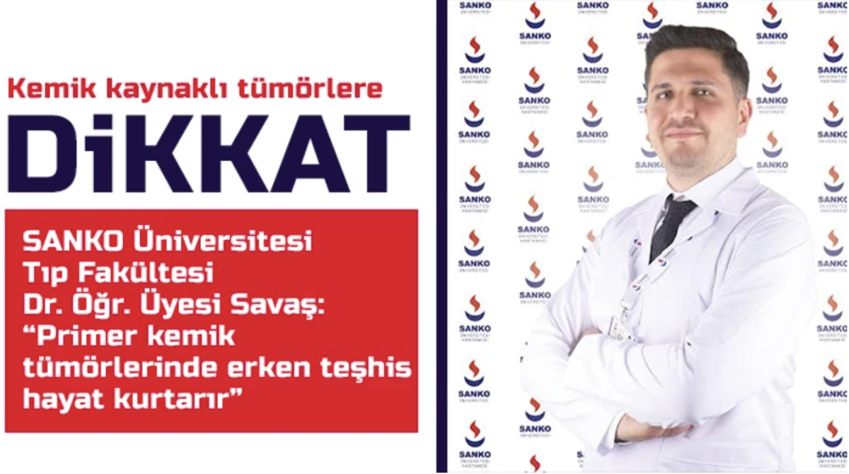 SANKO Üniversitesi Tıp Fakültesi Ortopedi ve Travmatoloji Ana Bilim Dalı'ndan Dr. Öğr. Üyesi Toktamış Savaş, iyi huylu primer kemik tümörlerinin (Kemik kaynaklı tümörler) geneli tesadüfen saptığını belirterek, “Tüm kötü huylu tümörlerde olduğu gibi primer kemik tümörlerinde de erken teşhis hayat kurtarır” dedi.