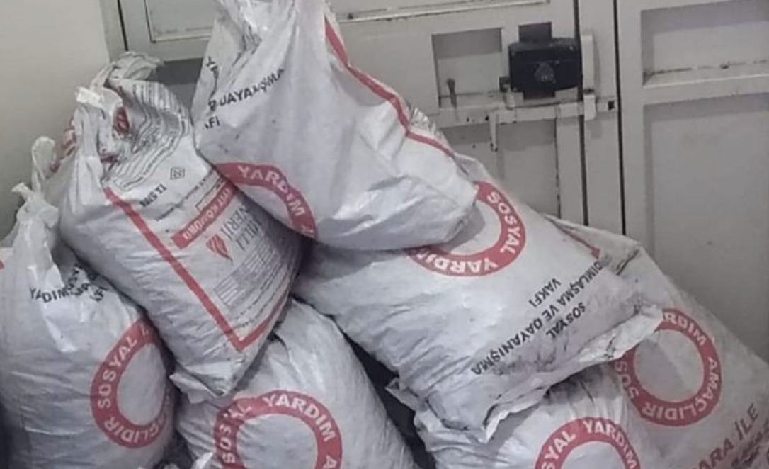 Gaziantep'te Sosyal Yardımlaşma ve Dayanışma Vakfı'nın ücretsiz dağıttığı 25 kilogramlık kömür torbalarını sosyal medyadan satılıyor.