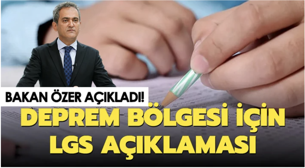 Milli Eğitim Bakanı Mahmut Özer, Liselere Geçiş Sistemi (LGS) kapsamında 4 Haziran'daki merkezi sınavın deprem bölgesindeki iller dahil ülke genelinde yapılacağını açıkladı.