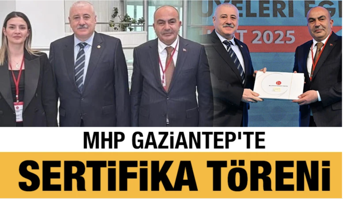 MHP Gaziantep İl Başkanı Mustafa Bozgeyik, ve ilçe başkanları, Genel Başkan Devlet Bahçeli’nin himayesinde düzenlenen Parti İçi Eğitim, Siyaset ve Liderlik Okulu programına katıldılar. Eğitim sonrası düzenlenen sertifika töreninde, TBMM İdari Amiri Milletvekili Sermet Atay tarafından İl Başkanı Mustafa Bozgeyik’e teslim edildi.