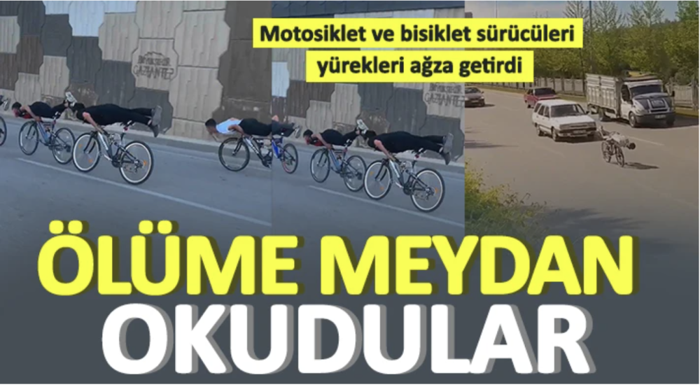 Edinilen bilgiye göre, Gaziantep’in Şehitkamil ilçesinde Mareşal Fevzi Çakmak Bulvarı civarında bölünmüş yolda motosiklet ve bisikletinin üzerinde tehlikeli hareketler yapan sürücüler kameralara yansıdı. Motosikletinin üzerine yatarak yoluna devam eden sürücü cep telefonu kamerası ile kayıt altına alındı. Kendi canını ve araç trafiğini hiçe sayarak tehlikeye sokan sürücü bir süre yoluna bu şekilde devam etti. Görüntüler sosyal medyada büyük tepki aldı.