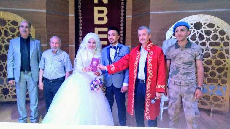 Asker ve ailenin hasret gidermesinin ardından ise nikah merasimi kaldığı yerden devam etti. Çifte sevinç yaşayan çiftin nikahları Başkan Mehmet Tahmazoğlu tarafından kıyıldı. Çifte evlilik cüzdanını veren Başkan Mehmet Tahmazoğlu, çiftin ömür boyu mutlu, huzurlu ve bereketli bir ömür geçirmeleri temennisinde bulundu.