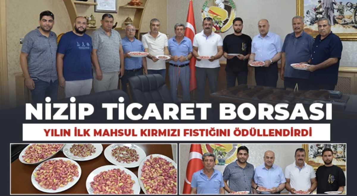Yeni yılın ilk mahsulü olan bölgemizde erkenci ismi ile tabir edilen kırmızı ben fıstığını üreten çiftçilerimiz Sarıkoç kırsal mahallesinden Ahmet Naim ve Dazhöyük kırsal mahallesinden Yunus Emre Kılıçparlar Nizip Ticaret Borsası tarafından yarım altınla ödüllendirildi.