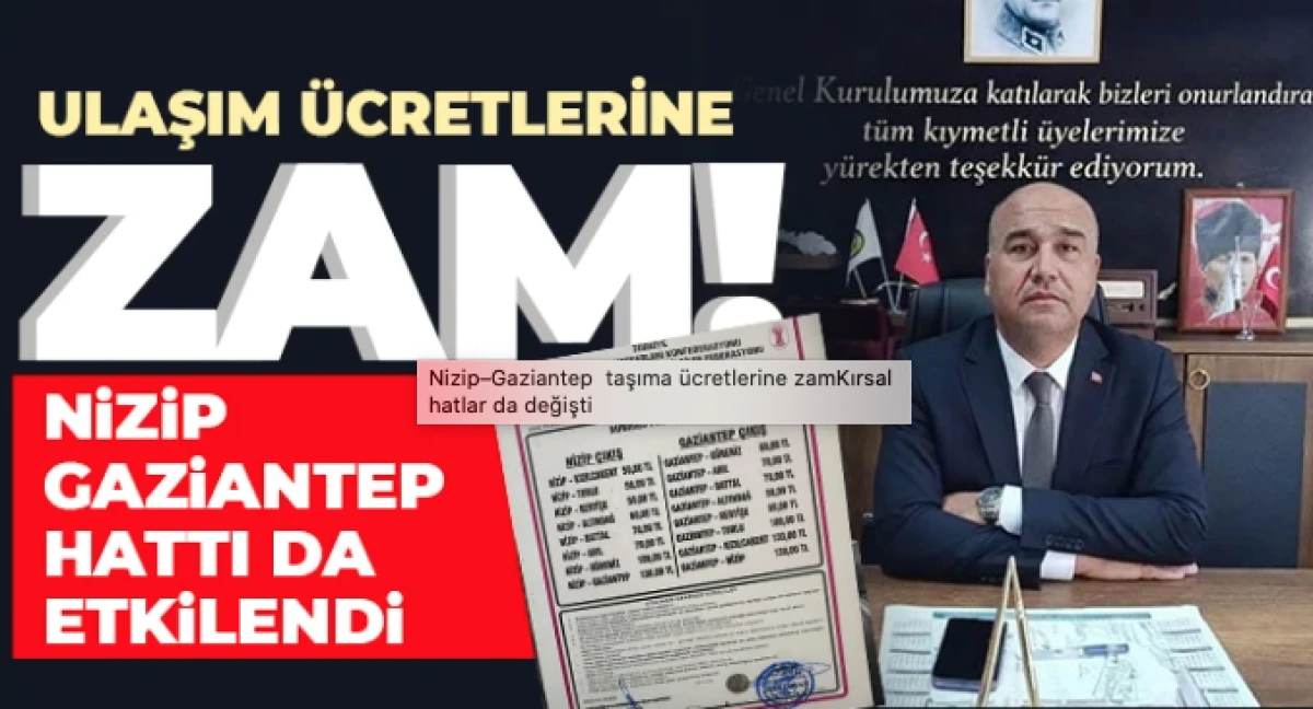 Gaziantep'in Nizip ilçesinde kırsal hatlar ve Gaziantep hattındaki taşıma ücretlerine zam yapıldı.