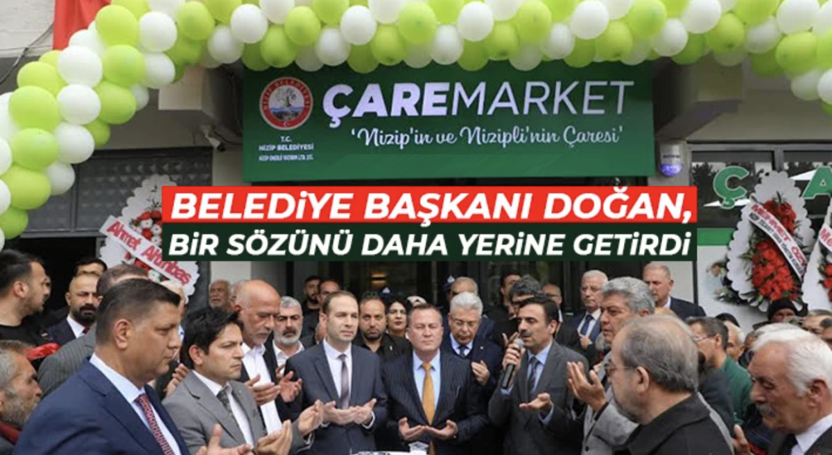 Nizip İlçe Kaymakamı Osman Uğurlu da, Çare Market'in Nizip halkı için hayırlı olması temennisinde bulunarak, Nizip Belediye Başkanı Ali Doğan ve ekibine teşekkürlerini iletti. Okunan duaların ardından kurdele kesimiyle Çare Market resmen hizmete girdi. Davetliler marketi gezerek sunulan ürünler ve fiyatlar hakkında bilgi aldı. Vatandaşlar, böyle bir hizmetin hayata geçirilmesinden duydukları memnuniyeti dile getirerek Belediye Başkanı Ali Doğan'a teşekkürlerini ilettiler. Çare Market'in, temel gıda ürünlerinden temizlik malzemelerine kadar geniş bir yelpazede kaliteli ürünleri uygun fiyatlarla sunarak, özellikle dar gelirli vatandaşlara önemli bir destek olması bekleniyor. Açılışa, Cumhuriyet Halk Partisi Gaziantep İl Başkanı Reis Reisoğlu, CHP Nizip İlçe Başkanı Murat Alagöz, İYİ Parti Nizip İlçe Başkanı Yakup Karakuş, oda başkanları, mahalle muhtarları ve vatandaşlar katıldı.