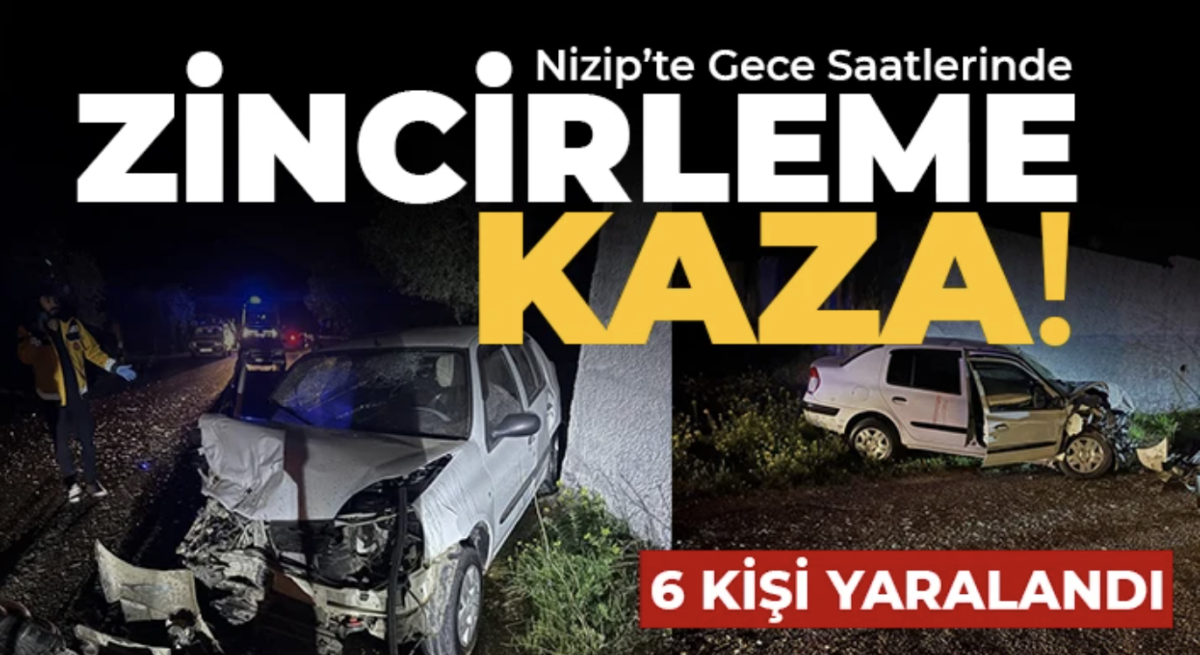 Nizip ilçesinde gece geç saatlerde meydana gelen zincirleme trafik kazasında 6 kişi yaralandı. Olay, İstasyon Mahallesi Taşbaş Yolu üzerinde üç aracın karıştığı zincirleme çarpışma sonucu gerçekleşti.