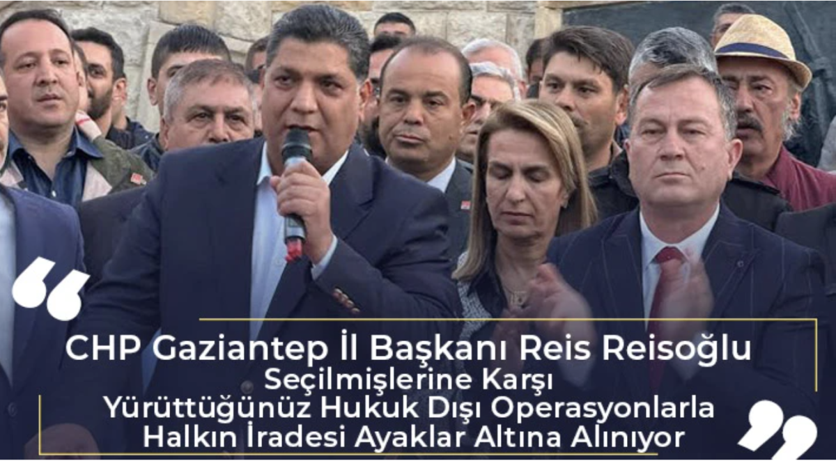 CHP Gaziantep İl Başkanı Reis Reisoğlu, “Esenyurt Belediye Başkanımız Sayın Ahmet Özer’in hukuki bir gerekçe olmaksızın tutuklanması, ülkemizde demokrasinin, halk iradesinin ve hukuk düzeninin iktidar eliyle bir kez daha çiğnenmesi anlamına gelmektedir. Esenyurtluların oyuyla seçilen belediye başkanımızı hedef alarak halkın iradesini yok sayan bu kararı ve siyasi iktidarın yargıyı istediği gibi kullanarak kendi çıkarlarına göre hukuk dışı süreçler işletmesini asla kabul etmiyoruz” diye konuştu.