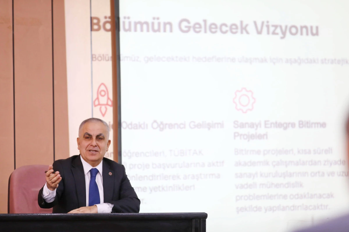 Toplantıda konuşan Rektör Prof. Dr. Doğan, Makine Mühendisliği Bölümü’nün üniversitenin kurucu bölümlerinden birisi olduğunu belirterek, bu yönüyle ayrı bir öneme sahip olduğunu söyledi.