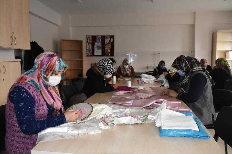 Şahinbey Belediyesi’ne bağlı Mimar Sinan Gençlik Merkezi’nde verilen el sanatları giyim ve iğne oyası kurslarına gelen kadınlar aldıkları eğitim ile aile bütçelerine de katkıda bulunuyorlar. Düzenlenen kurslarda maske, mesafe ve hijyen kurallarına hassasiyetle dikkat ediliyor.