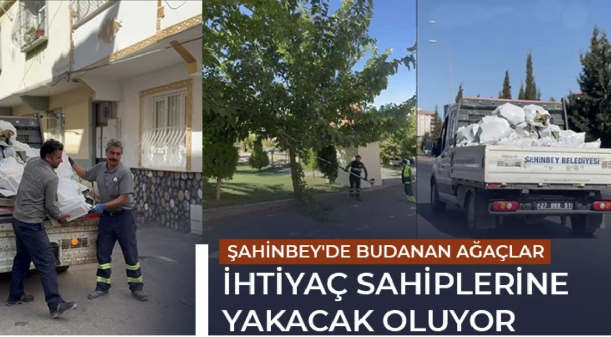 Şahinbey Belediyesi, ilçe genelinde budadığı ağaçlardan elde ettiği odunları dar gelirli ailelere yakacak yardımı olarak ulaştırıyor.