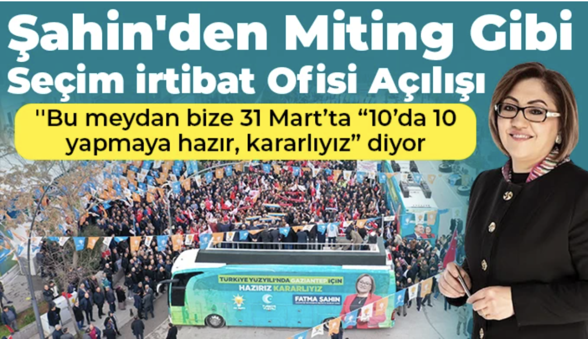 Gaziantep Büyükşehir Belediye Başkanı ve Başkan Adayı Fatma Şahin, binlerin katılımı ve coşkuyla miting havasında Seçim irtibat ofisi açılışı yaptı. Şahin’in yaptığı açılışa Gazianteplilerin ilgisi bir süre önce Şanlıurfa’da Yeniden Refah Partisi adayı Kasım Gülpınar’ın yaptığı büyük mitinge olan katılımla kıyaslandı.