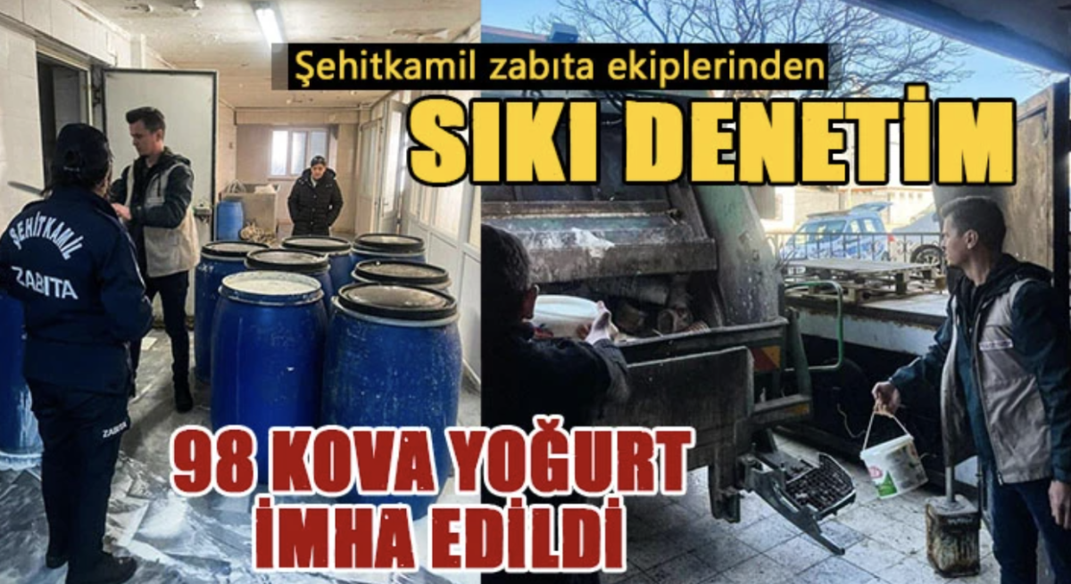 Şehitkamil Belediyesi Zabıta Müdürlüğü ekipleri tarafından bir iş yerinde yapılan denetimlerde hijyenik şartlar taşımayan ve güvenilir olmayan 98 kova yoğurt imha edildi.