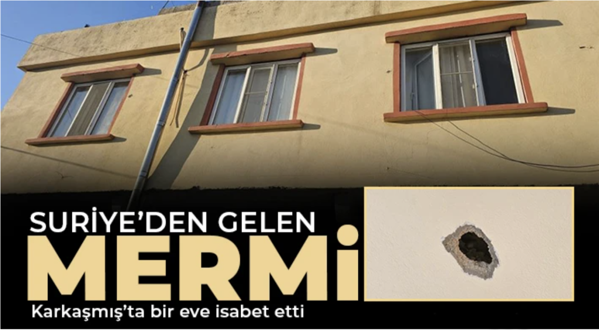 Gaziantep’in Karkamış ilçesine bağlı Karşıyaka Mahallesi'nde bulunan bir eve, Suriye tarafından geldiği tahmin edilen yorgun mermi isabet etti. Mermi camdan geçerek evin içindeki duvara saplandı. Vatandaşların ihbarı üzerine eve jandarma ekipleri sevk edilirken şans eseri evde bulunan vatandaşlar yara almadan kurtuldu. Olay ile ilgili inceleme başlatıldı.