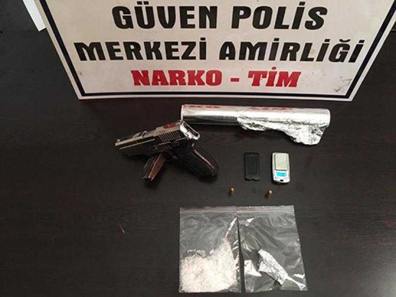 1 adet tabanca ve bu tabancaya ait fişekler, bir adet hassas terazi ve 11.69 gram uyuşturucu maddesi ele geçirilmiş olup olayla ilgili çalışmalara başlanmıştır.