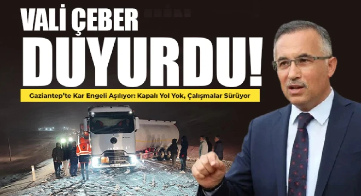 Gaziantep’te etkili olan kar yağışı nedeniyle bazı karayollarında yaşanan aksamalara ilişkin Gaziantep Valisi Kemal Çeber’den açıklama geldi. Vali Çeber, sosyal medya hesabından yaptığı duyuruda, kent genelinde kapalı otoyol güzergâhı bulunmadığını belirtti.