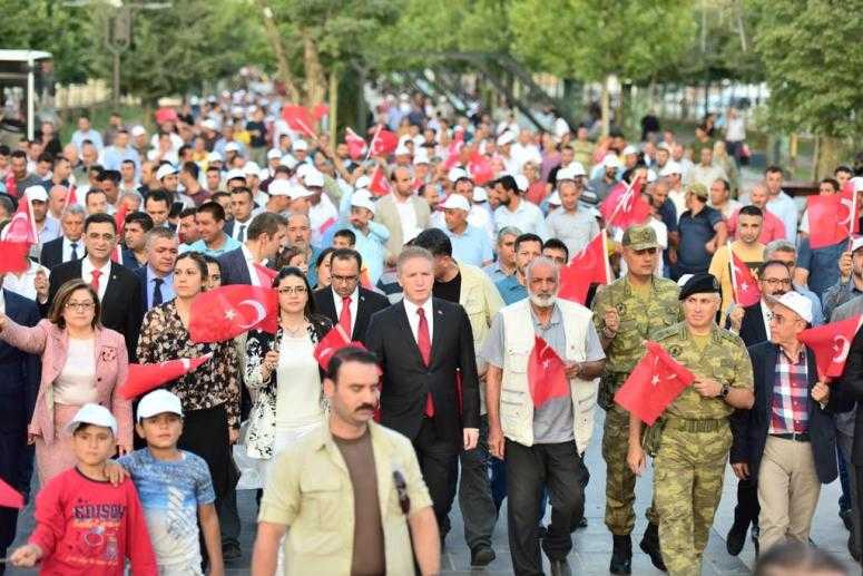 Yoğun katılımın yaşandığı programda vatandaşlara hitap eden Vali Gül, son üç yıldır iki duyguyu aynı anda yaşadıklarını dile getirerek, “Hem çok sevinçliyiz hem çok üzüntülüyüz, sevinçliyiz çünkü bu kahraman millet, bu devleti uçurumun kenarından aldı. Üzüntülüyüz, 251 şehit verdik. Kendi içimizde tankımızı, silahımızı kullanan, yine komşumuz, akrabamız, arkadaşımız olan insanlar bu ülkeyi son üç yıldır ayrı bir girdabın içerisine soktu” dedi.