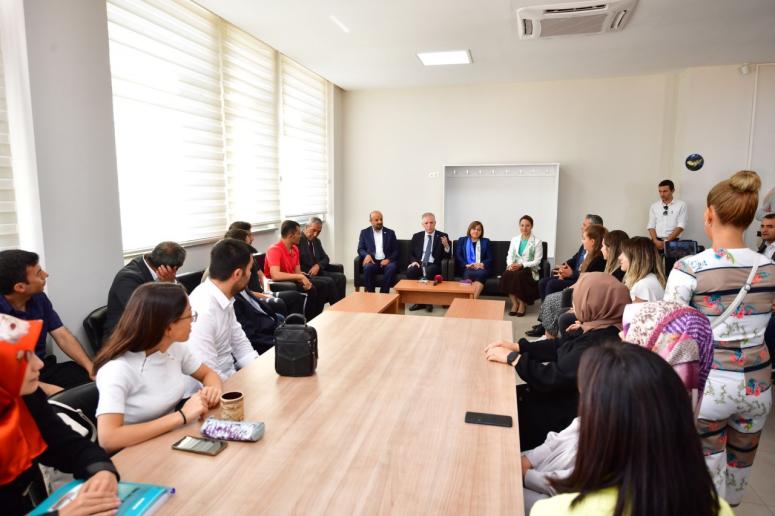 Konuşmaların ardından Vali Davut Gül ve protokol heyeti sınıfları gezerek akabinde öğretmenlerle bir araya geldi.