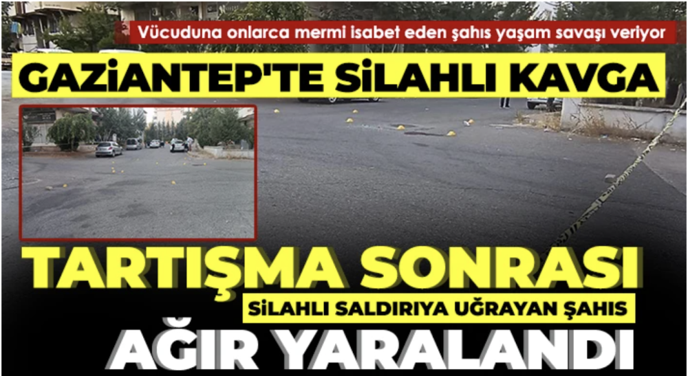 Gaziantep'te bir şahıs, tartışma yaşadığı bir grubun silahlı saldırısına uğradı. Olayda vücuduna onlarca kurşun isabet eden şahıs ağır yaralanırken saldırganları yakalamak için çalışma başlatıldı.