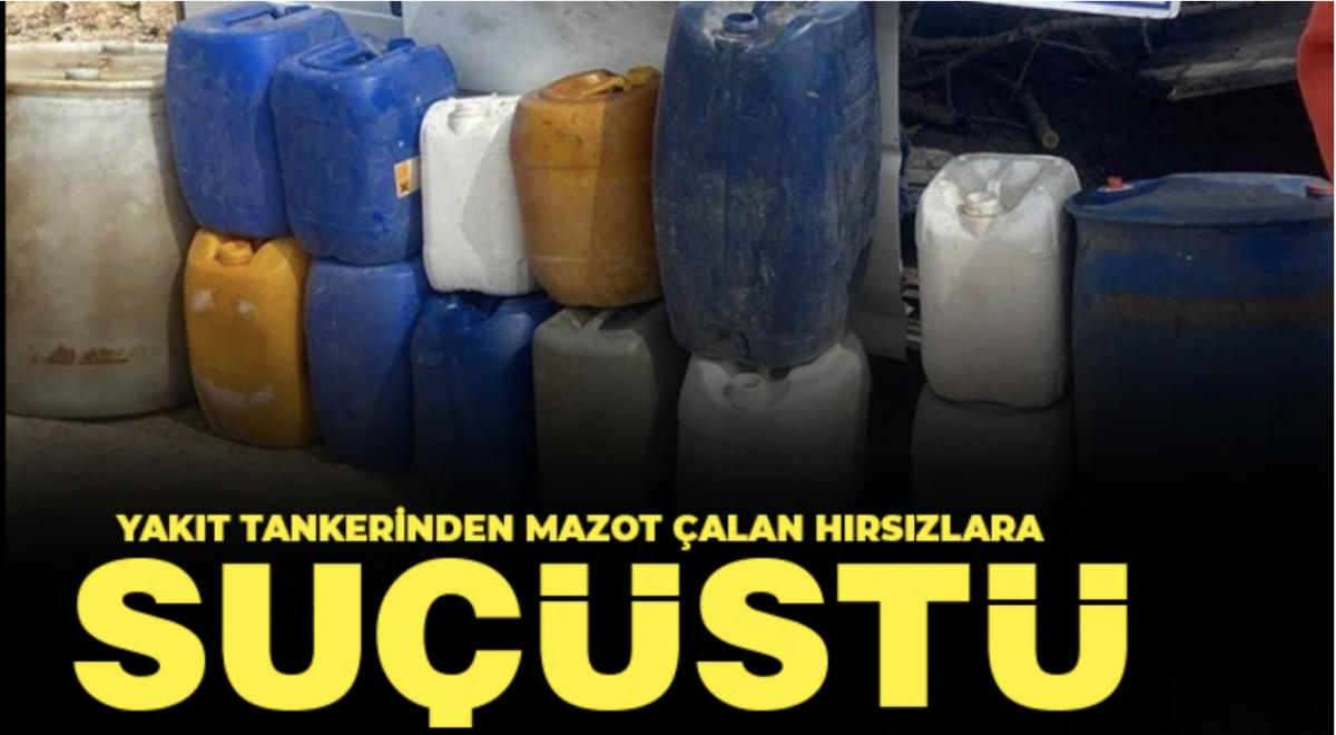 Yakıt tankerinden mazot çalan hırsızlara suçüstü
