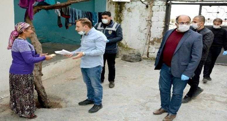 Gaziantep'in Araban ilçe Kaymakamı Abdulhamit Mutlu, yeni tip korona virüs salgını nedeniyle evlerinden çıkamayan 18 yaşlıyı evlerinde ziyaret ederek maaşını teslim etti.