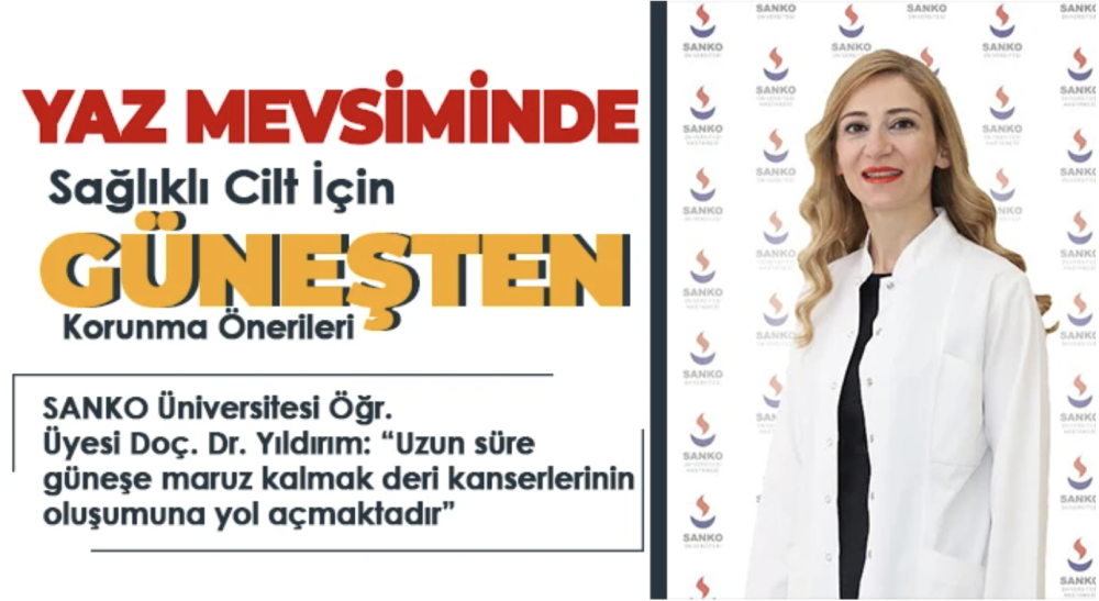 SANKO Üniversitesi Tıp Fakültesi Deri ve Zührevi Hastalıkları Ana Bilim Dalı Başkanı Doç. Dr. Fatma Elif Yıldırım, “Uzun süre güneşe maruz kalmanın, deri kanserlerinin oluşumuna ve deri yaşlanmasına neden olduğunu söyledi.