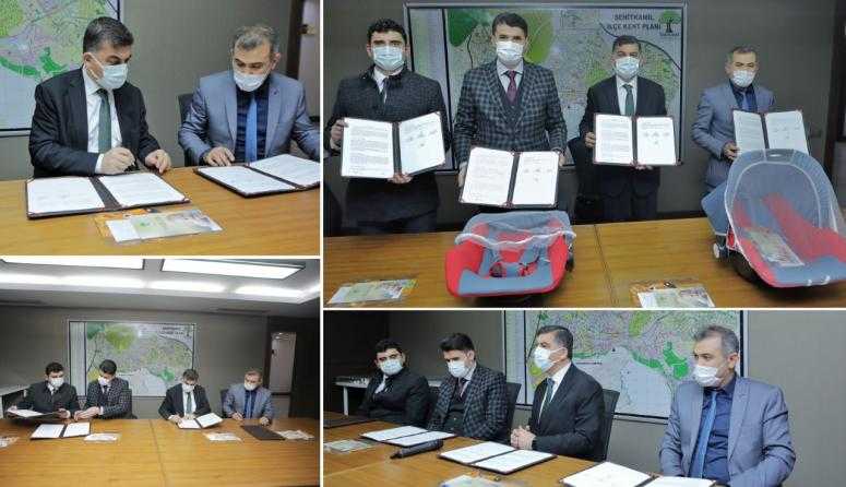 -‘MERHABA BEBEK’ PROJESİYLE İLGİLİ PROTOKOL İMZALANDI Şehitkamil Belediyesi, Şehitkamil Kaymakamlığı, Şehitkamil İlçe Nüfus Müdürlüğü ve Şehitkamil İlçe Sağlık Müdürlüğü arasında “Merhaba Bebek” projesinin protokolü imzalandı. İmzalanan protokol ile birlikte Şehitkamil Belediyesi tarafından yeni doğan bebeklere, bebek taşıyıcısı (puset) annelere ise ‘Merhaba Bebek’ isimli eğitim kitapçığı hediye edilecek. Şehitkamil Belediye Başkanı Rıdvan Fadıloğlu’nun makamında düzenlenen protokol imza törenine; Şehitkamil Kaymakamı Ömer Kalaylı, Şehitkamil İlçe Nüfus Müdürü Ali Ceyhan ve Şehitkamil İlçe Sağlık Müdürlüğü Erol Karataş katıldı