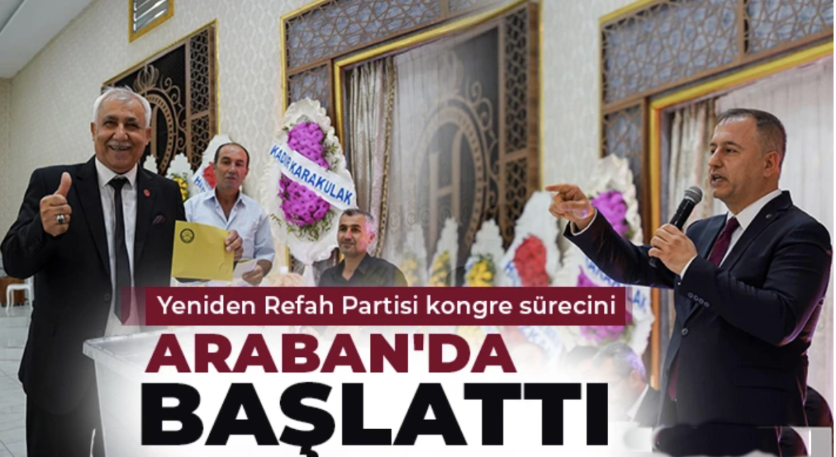 Özeli bir düğün salonunda gerçekleşen ilçe kongresinde tek aday olan Yusuf Karademir Araban ilçe başkanı seçildi. Saygı duruşu ve İstiklal marşı ile başlayan Yeniden Refah Partisi Araban ilçe kongresine Genel merkez kurucular kurulu üyesi Şükrü Yılmaz, İl başkanı Sedat Yıldız, İl sorumlusu Hikmet Kaplan, Oğuzeli belediye başkanı Bekir Öztekin, Yavuzeli belediye başkanı Mehmet Kaya, ilçe kongre delegeleri ve çok sayıda partili katıldı. Araban ilçe Başkanlığına seçilen Yusuf Karademir dilek ve temenniler konuşmasında kendisine güvenen partililere teşekkür ederek Yeniden Refah Partisinin yükselişini plan ve projeli çalışmalarla sürdürmeye devam edeceklerini söyledi.