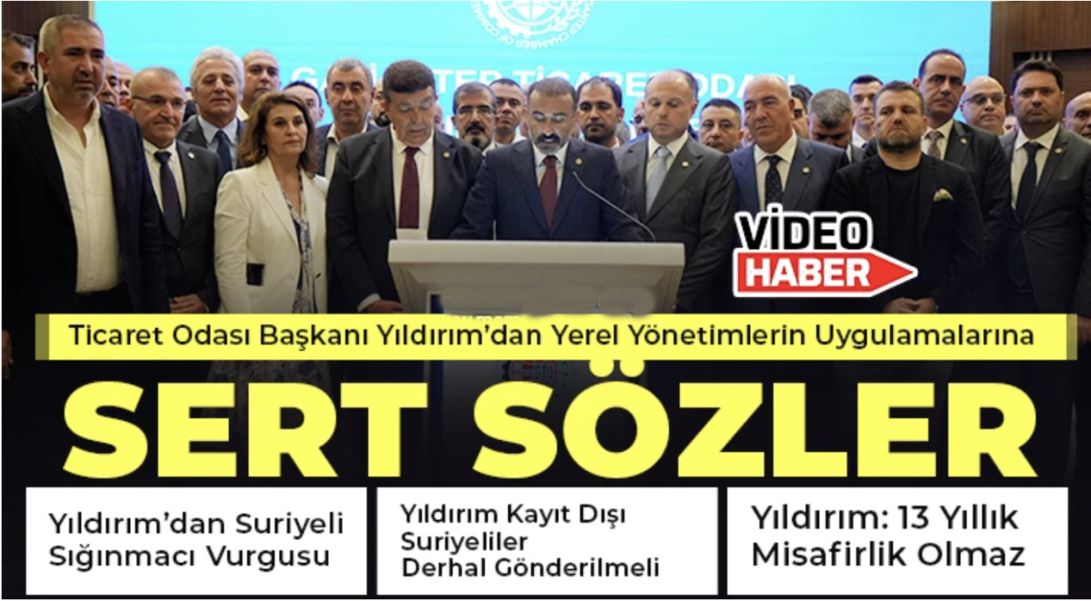 Gaziantep Ticaret Odası Başkanı Tuncay Yıldırım, Yerel yönetimlerin ticaret sektörüne yönelik uygulamalarını eleştirerek, Suriyeliler konusunda artık çözüm üretilmesi gerektiğini vurguladı. 13 yıllık misafirliğin artık fazla olduğunu belirten Yıldırım, düzensiz göçlerin engellenmesi gerektiğini söyledi.