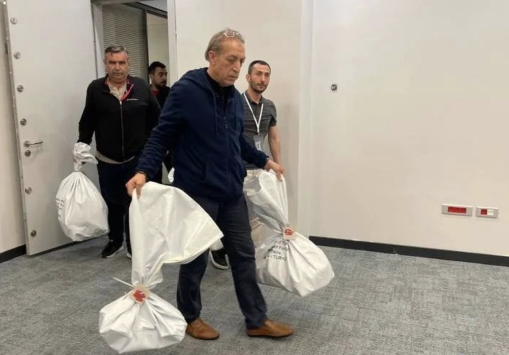 Vatandaşların kullandığı oyların bulunduğu çuvallar, sandık ve seçim görevlilerinin gözetiminde mühürlendikten sonra kurye ve siyasi parti temsilcileri eşliğinde Türk haberleri">Türk Hava Yollarının ( thy haberleri">THY) tarifeli uçaklarıyla İstanbul Havalimanı'na getiriliyor.