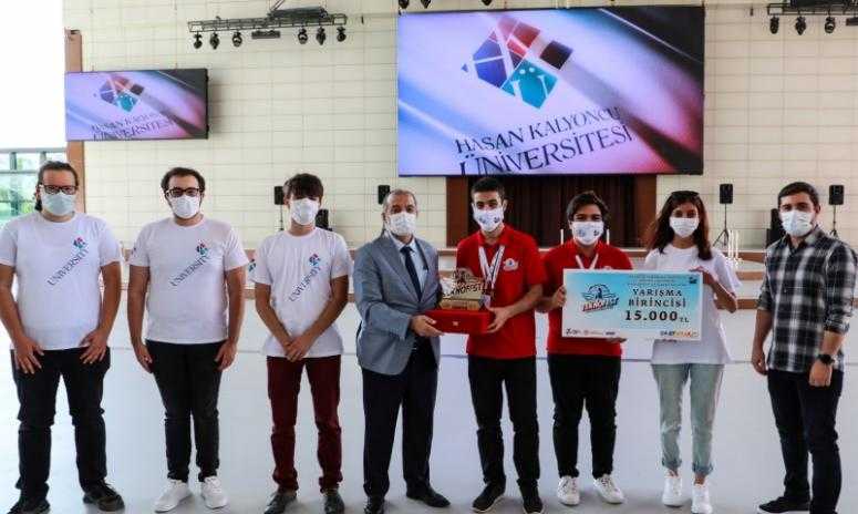 HKÜ Bilgisayar Mühendisliği bölümü öğrencileri ve akademik danışmanlarından oluşan CENGALYON takımı, çok oyunculu üç boyutlu park ortamı artırılmış gerçeklik uygulaması ile 1.’lik ödülünü kazandı. TEKNOFEST2020’nin ödül gününe birçok protokol üyesinin yanında İçişleri Bakanı Süleyman Soylu ve T3 Vakfı Mütevelli Heyeti Başkanı ve TEKNOFEST 2020 Yönetim Kurulu Başkanı Selçuk Bayraktar katıldı. HKÜ’nün CENGALYON takımına ödülü Bakan Süleyman soylu vererek takımı başarılarından ötürü tebrik etti.